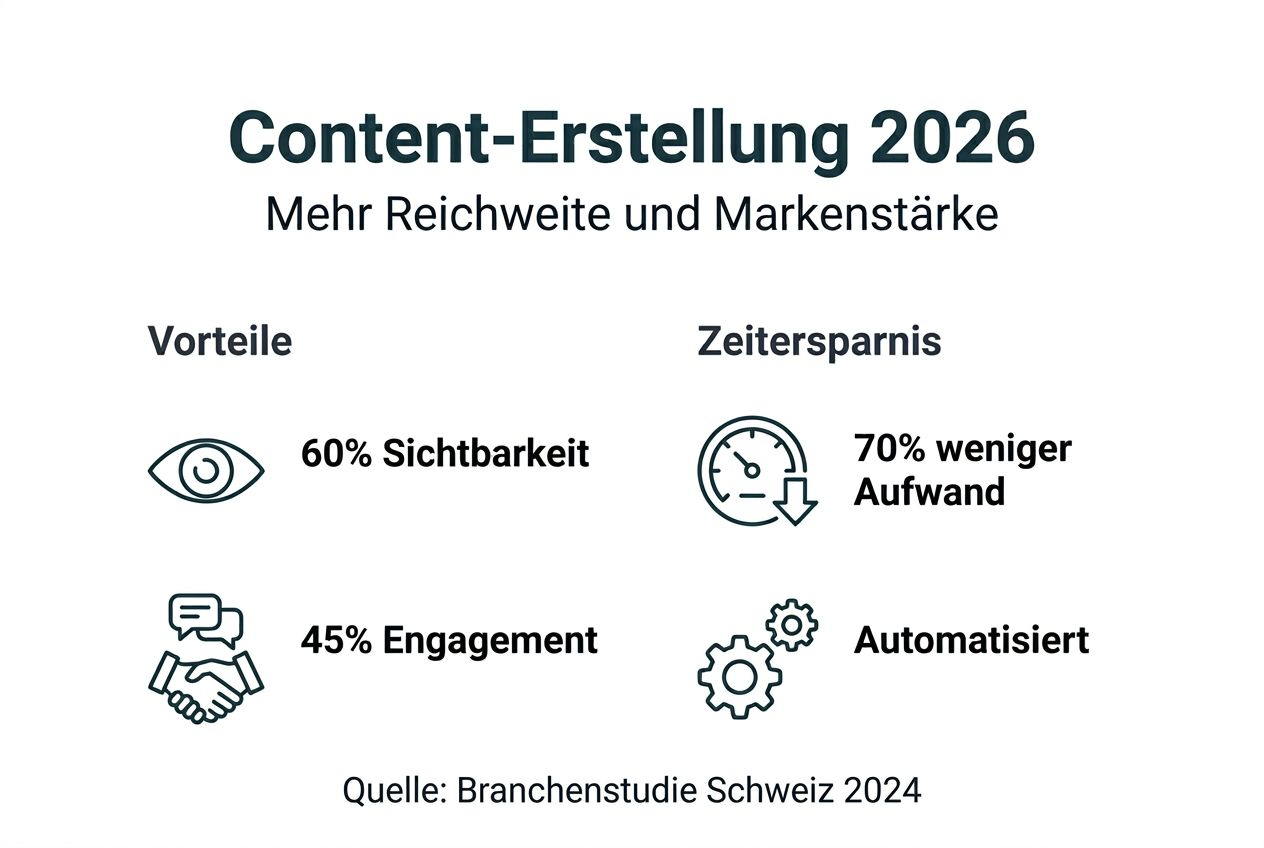 Professionell erstellter Social-Media-Content steigert die Sichtbarkeit von Marken um durchschnittlich 60 %. Für Marketing-Teams in der Schweiz ohne interne Designressourcen ist das eine bedeutende Chance. Dieser Artikel zeigt, wie professionelle Content-Erstellung Engagement erhöht, Ressourcen spart und praktisch umgesetzt wird.