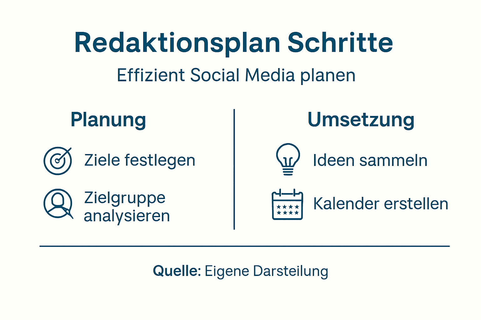 Dieser Schritt konzentriert sich darauf, klare Verantwortlichkeiten und Zeitpläne für Ihre Social-Media-Aktivitäten zu definieren. Ein gut strukturierter Social-Media-Redaktionsplan sorgt für reibungslose Abläufe und verhindert Kommunikationslücken.